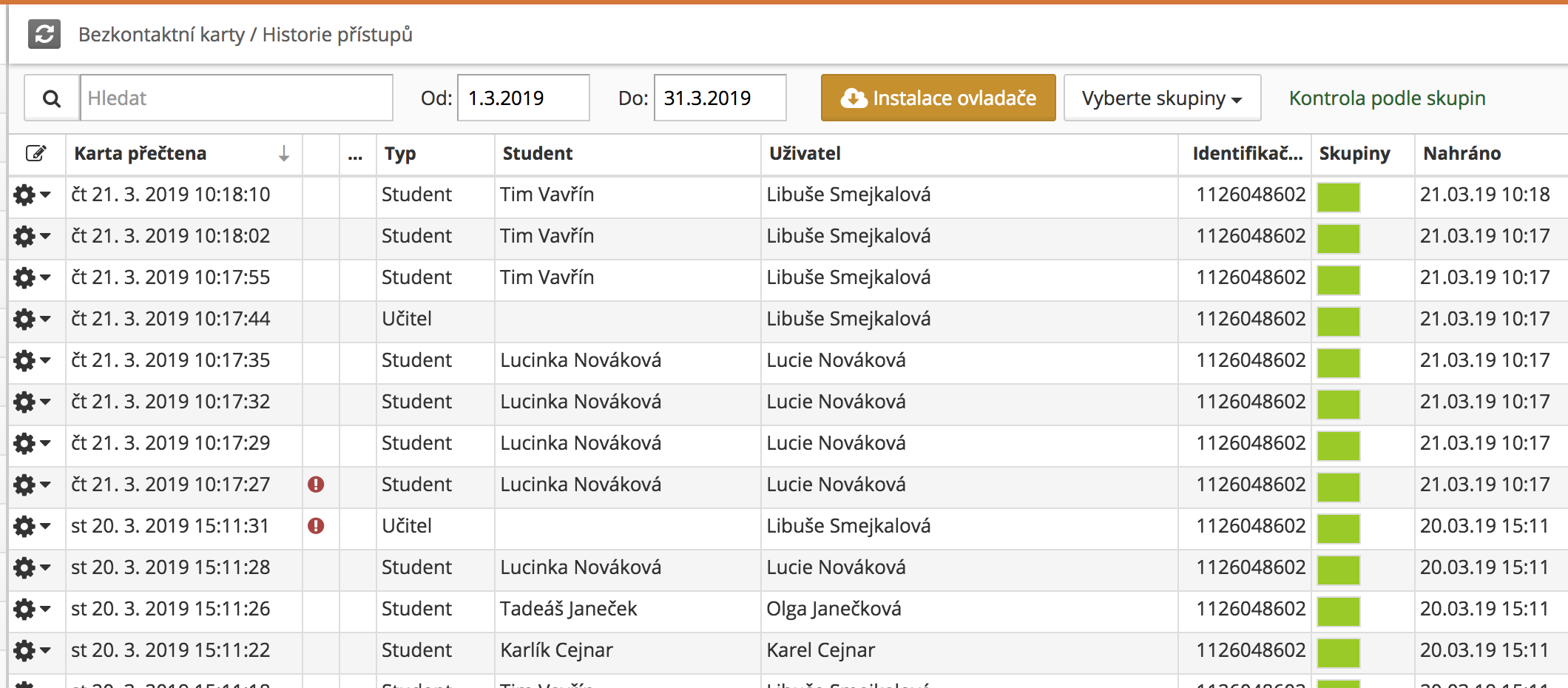 vždy když se propojí přes internet čtečka karet nebo mobilní aplikace čtečky karet s Webookerem, načtou se všechny napípané záznamy do modulu historie přístupů.