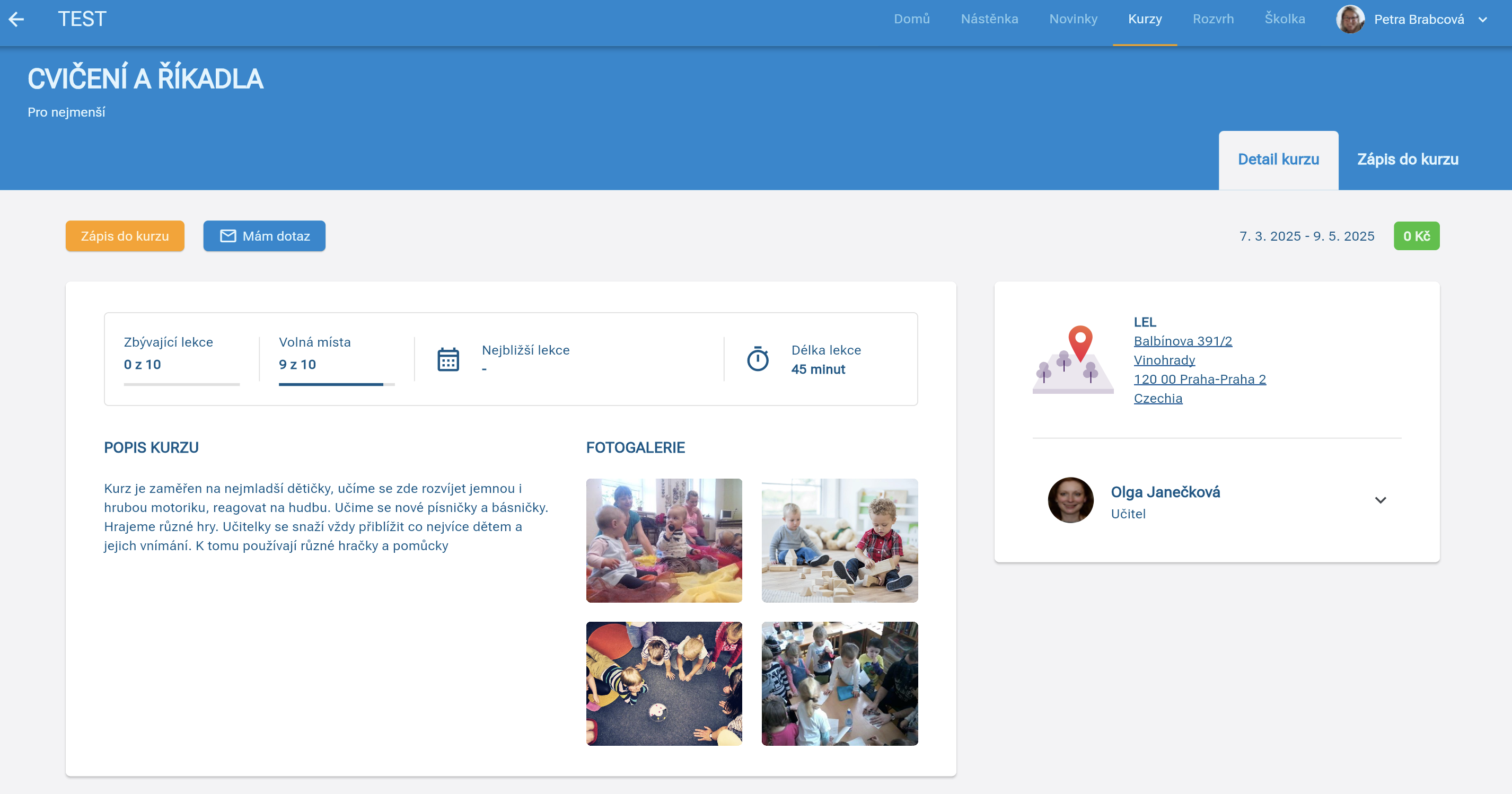Do systému je možné vkládat fotografie. Tyto fotografie se dají potom použít u kurzů, akcí nebo také jako logo na úvodní stránku.