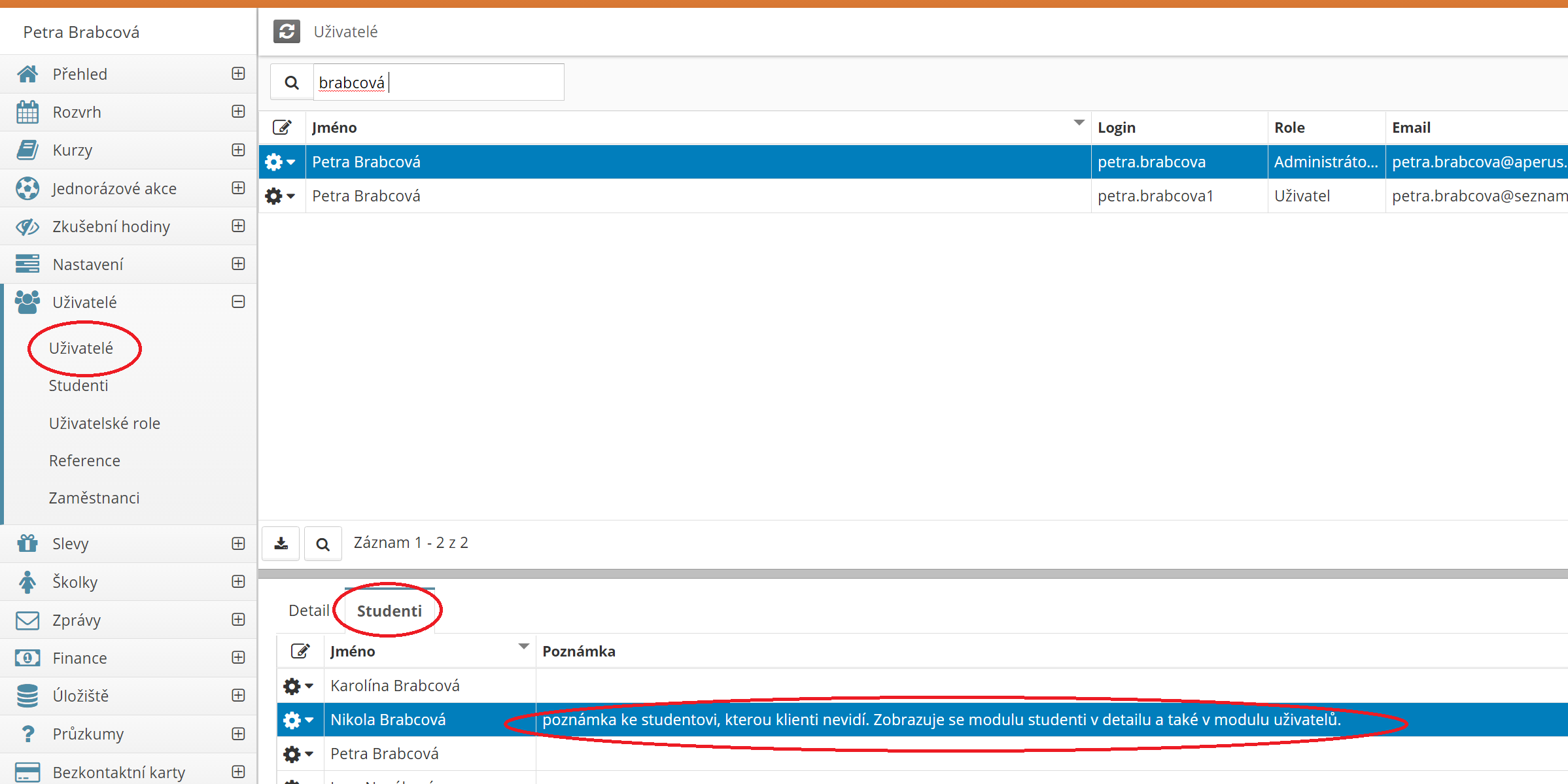 Pokud si potřebujete zaznačit nějakou interní poznámku ke studentovi, tak je to nyní možné v modulu studentů.