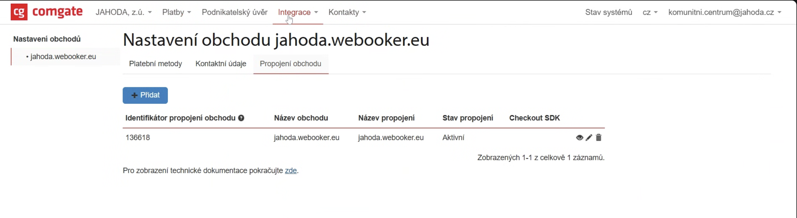 2. Až budete mít od Comgate bránu zřízenu, musíte provést nastavení obchodu na portálu Comgate.