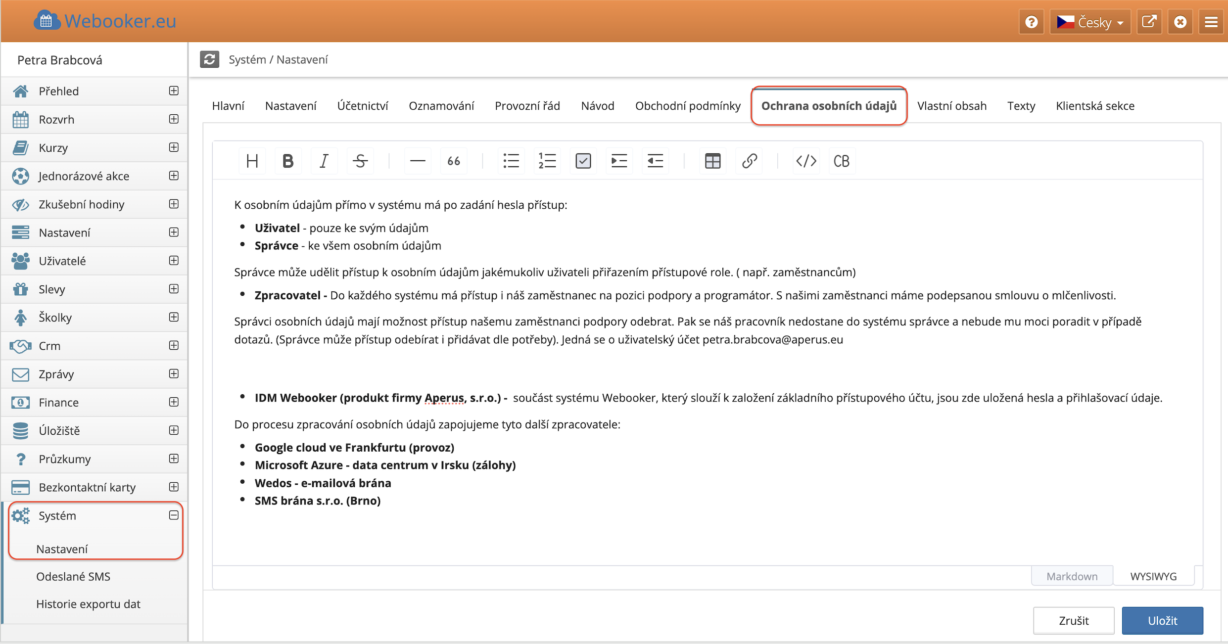 Pokud potřebujete klientům sdělit, jak nakládáte s jejich osobními údaji, můžete nyní využít novou záložku „Ochrana osobních údajů“.