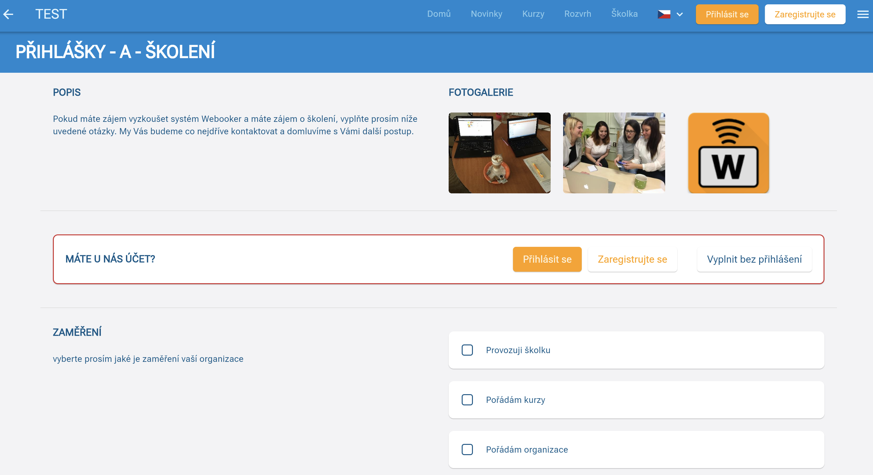 V tomto modulu si můžete vytvářet přihlášky, které Vám vaši klienti (dokonce i bez nutnosti registrace) budou moci vyplňovat v jejich klientské sekci.