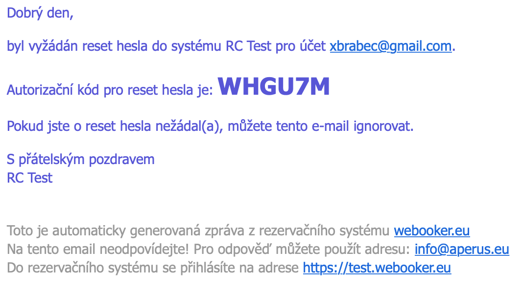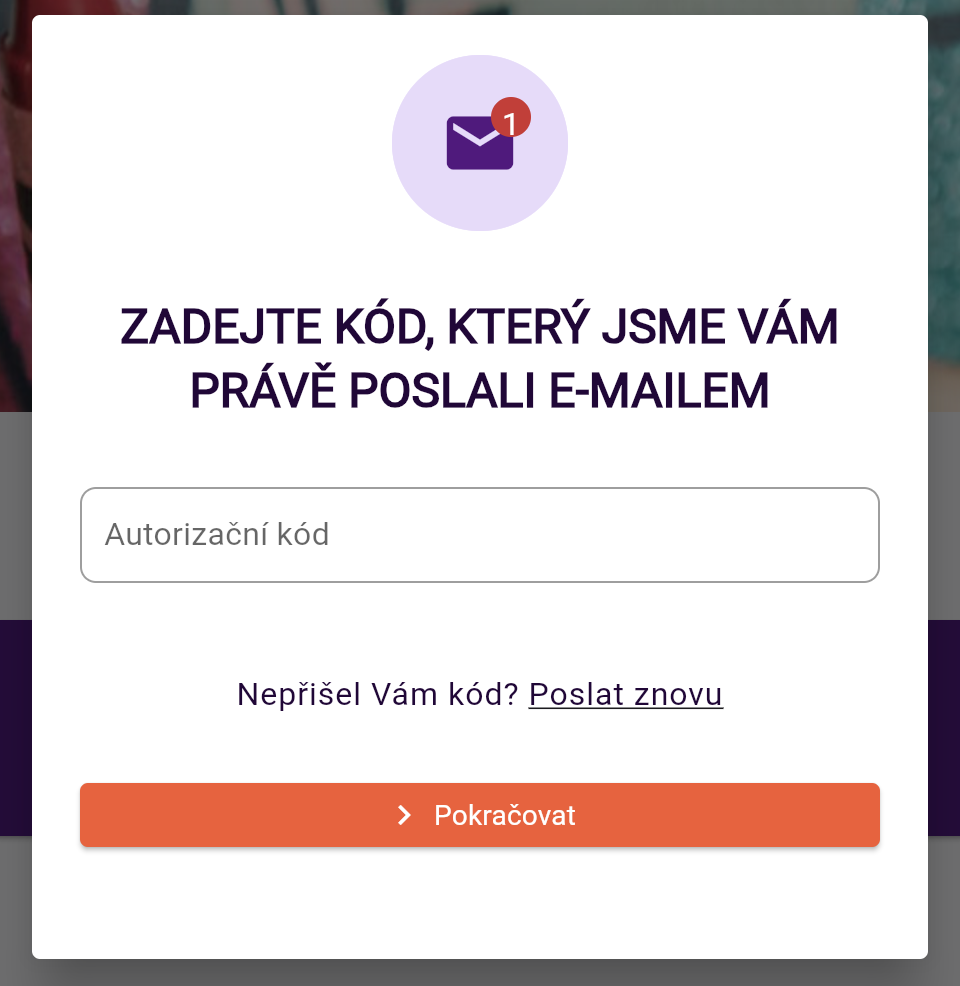 Systém vám odešle do e-mailu autorizační kód.
