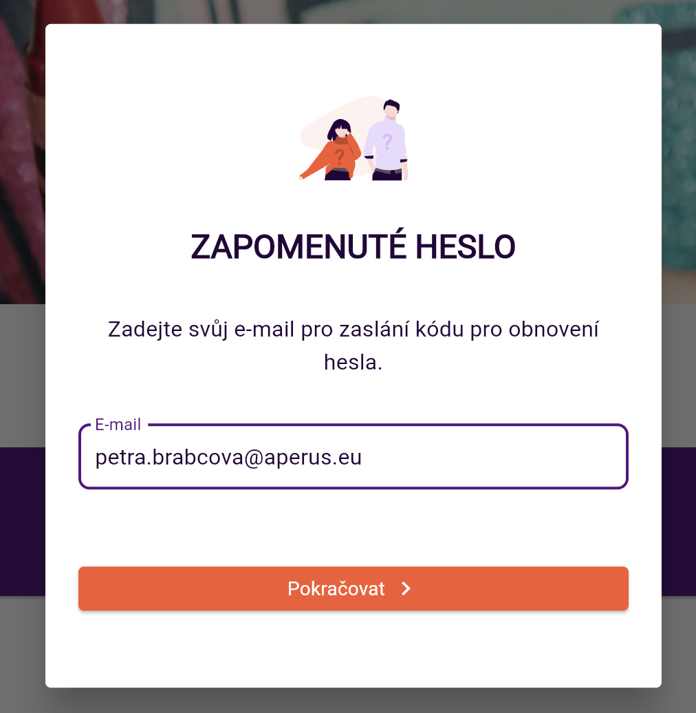 Klikněte na tlačítko "zapomenuté heslo" a vyplňte vaší e-mailovou adresu a dejte Pokračovat