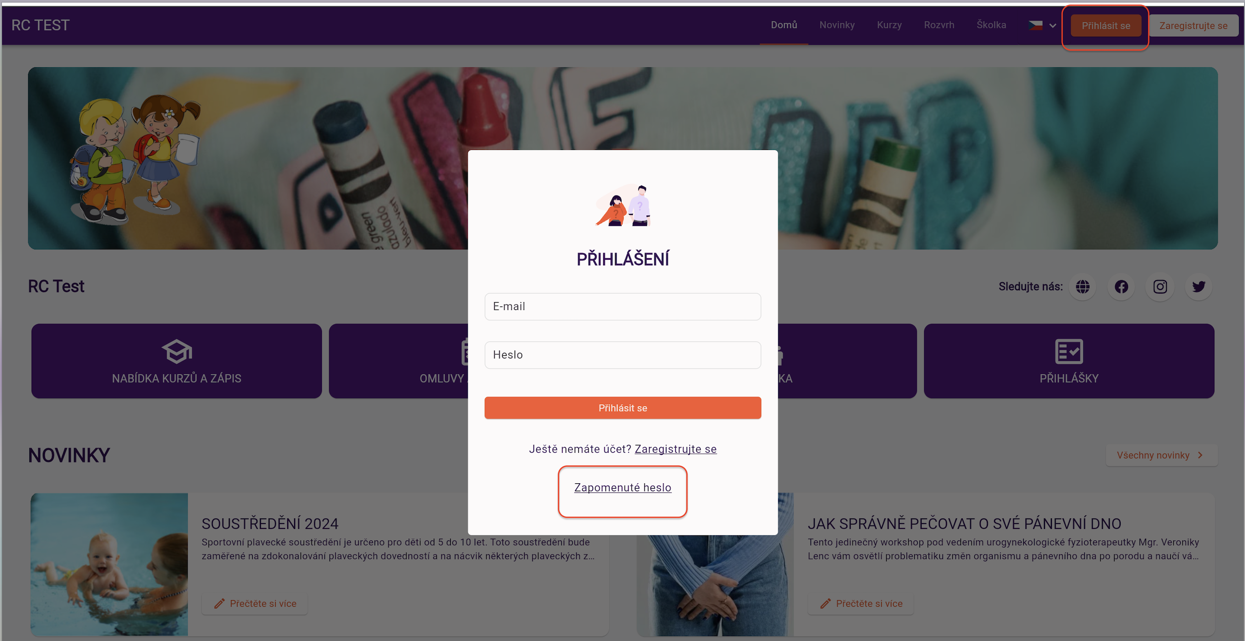 - Pod přihlašovacími údaji klikněte na tlačítko Zapomenuté heslo.