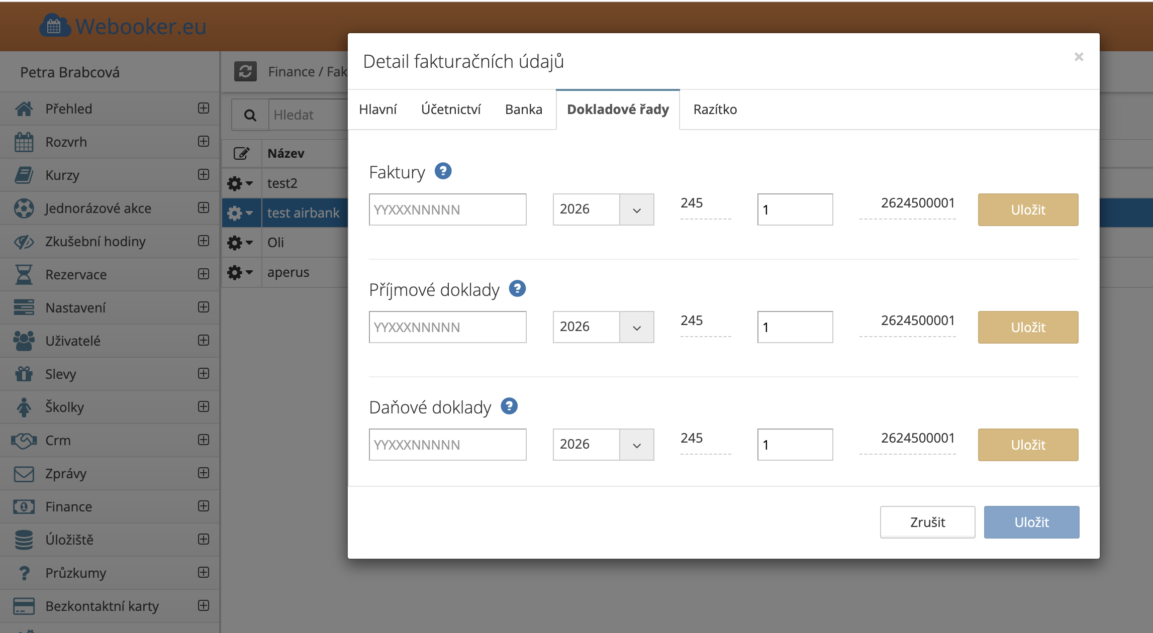 Název: interní název, který uvidíte při nastavování kurzů, akcí, tříd a ve finančních filtrech