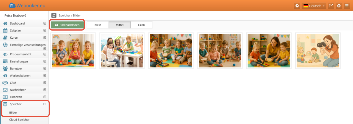 Im System können Fotografien hochgeladen werden. Diese Bilder können anschließend bei Kursen, Veranstaltungen oder auch als Logo auf der Startseite verwendet werden.