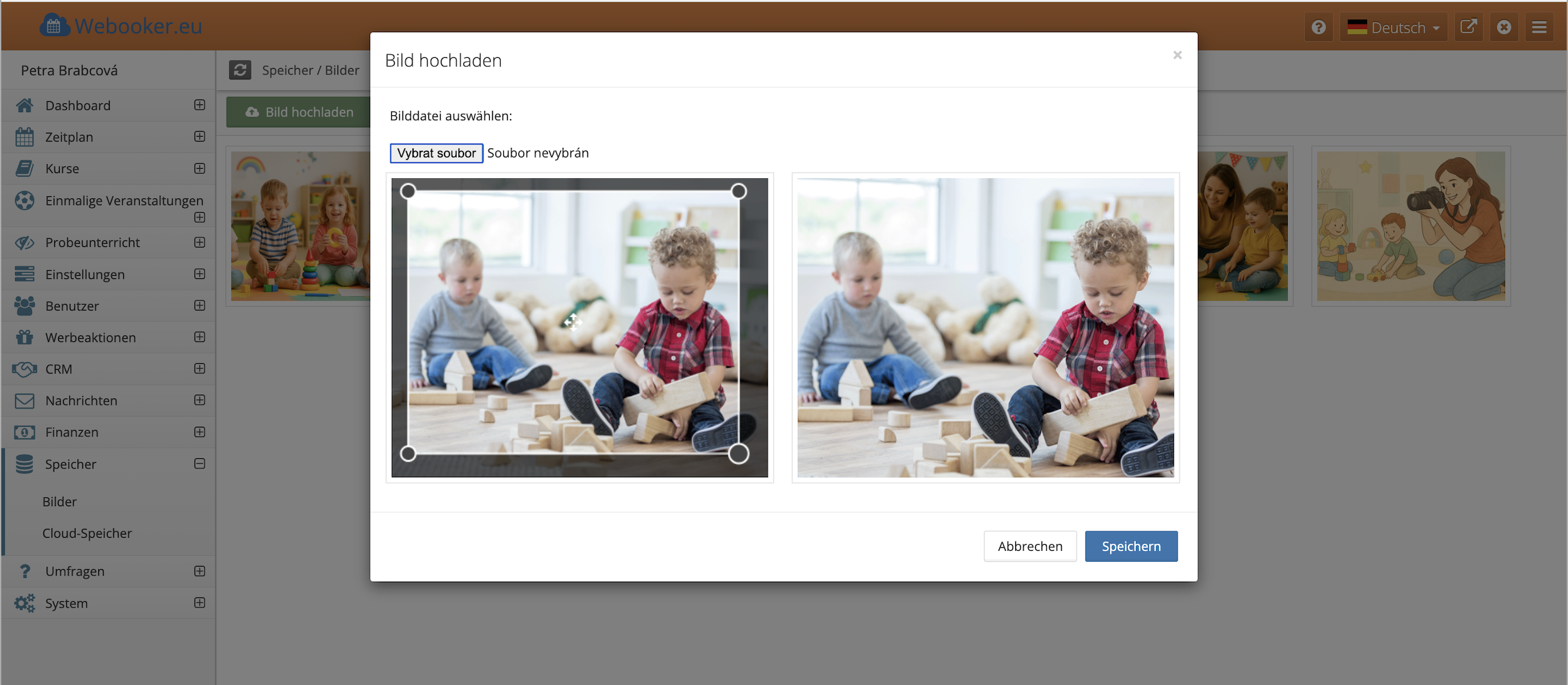 Bilder können direkt beim Erstellen eines Kurses oder einer Veranstaltung hinzugefügt oder aus dem Bildspeicher ausgewählt werden.