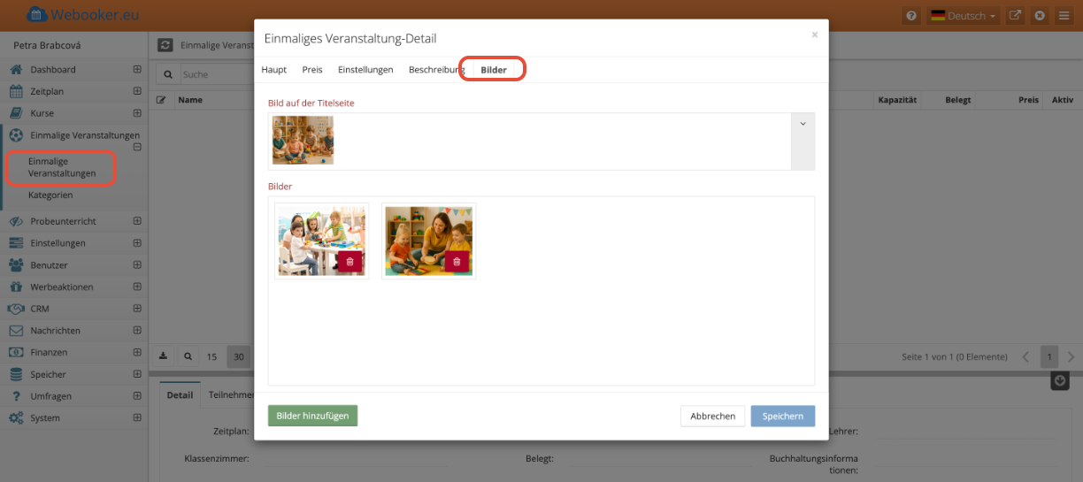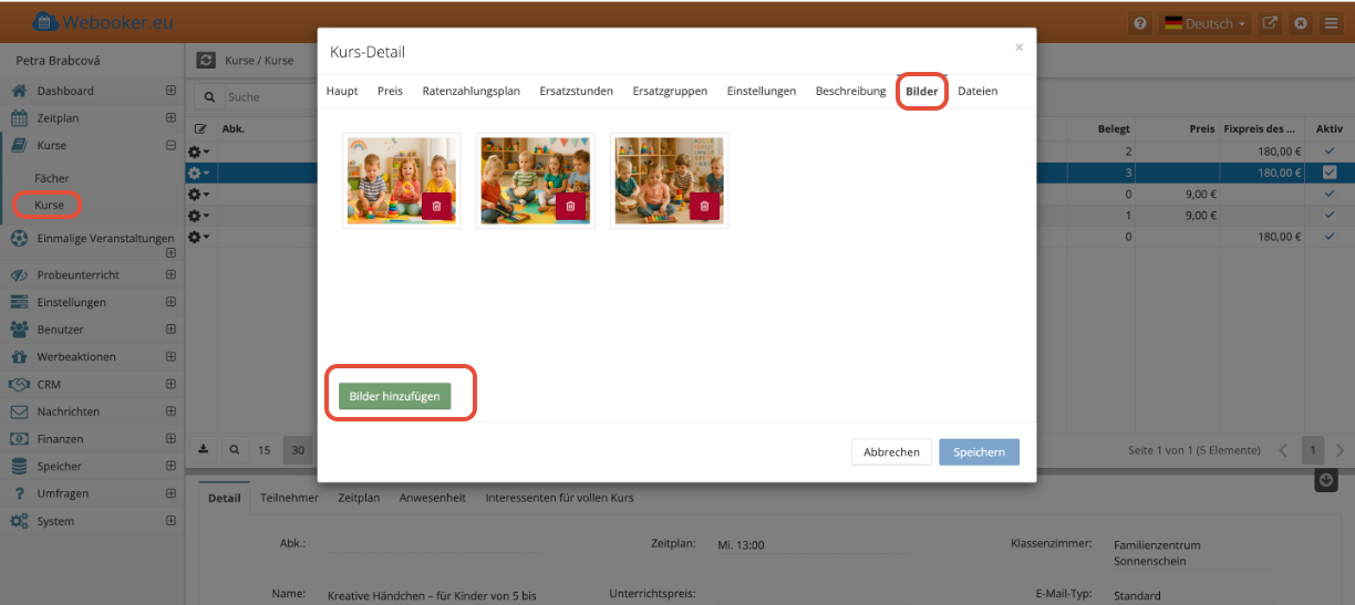 Die Bilder finden Sie immer im Detail des Kurses oder der Veranstaltung im Tab „Bilder“.