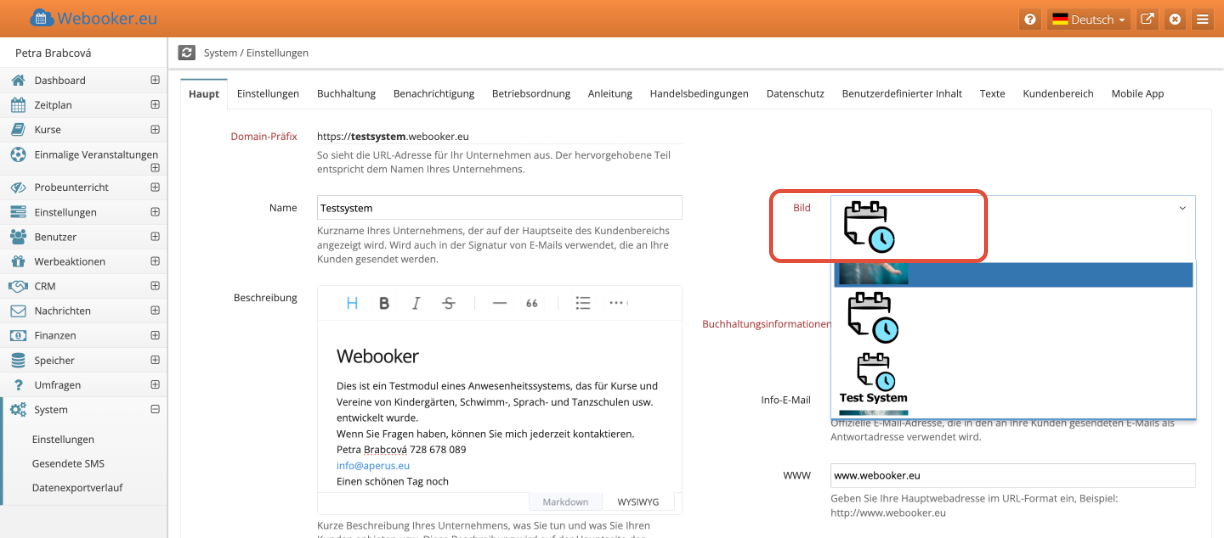 Ein Bild als Logo auf der Startseite der Kundensektion wird in den Systemeinstellungen festgelegt.