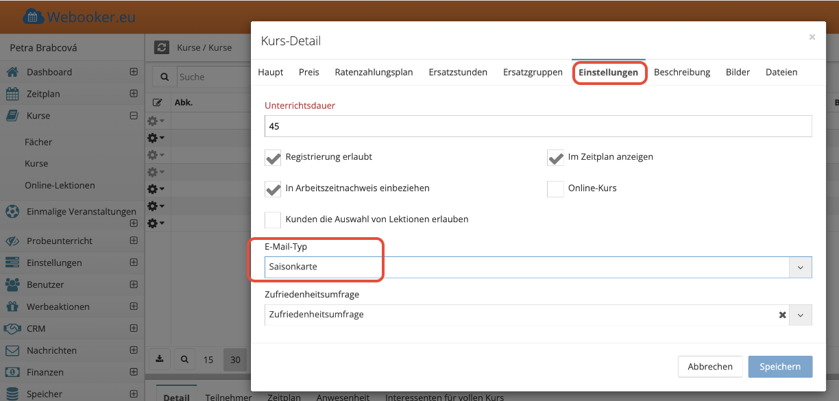 Außerdem können Sie eine spezielle E-Mail für Saisonkarten festlegen, die Sie im Bereich Nachrichten → E-Mail-Vorlagen anpassen können.
