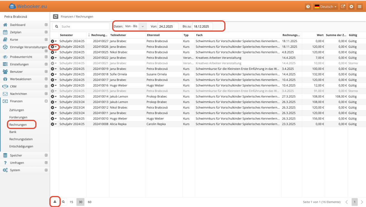 Nach der Anmeldung eines Teilnehmers zu einem Kurs oder einer Veranstaltung wird automatisch eine Rechnung erstellt.