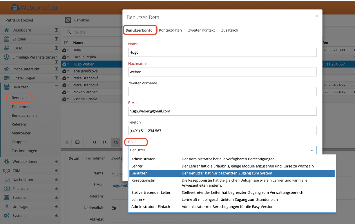 In diesem Modul sind bereits von uns erstellte Beispielrollen vorhanden, die Sie sofort verwenden können, jedoch nicht bearbeitet werden können, wie z. B. Lehrer, Rezeption usw.