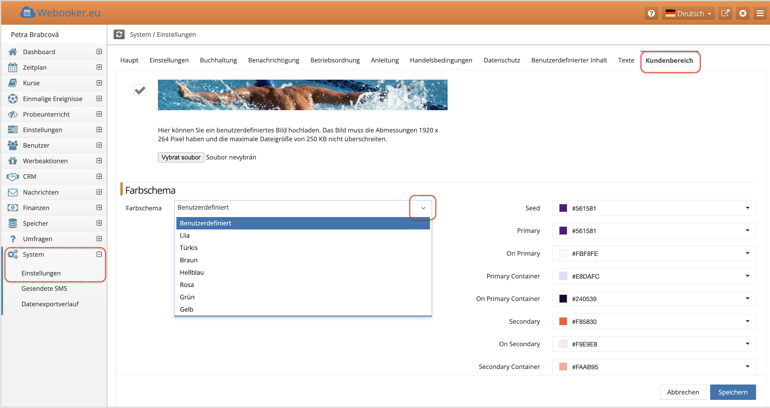 Jede Organisation kann das Aussehen ihres Webookers an ihren Stil und Fokus anpassen. Sie können die Schriftfarben, einzelne Bereiche des Systems, Banner, Bilder und weitere Elemente ändern – ganz nach Ihren Vorstellungen!