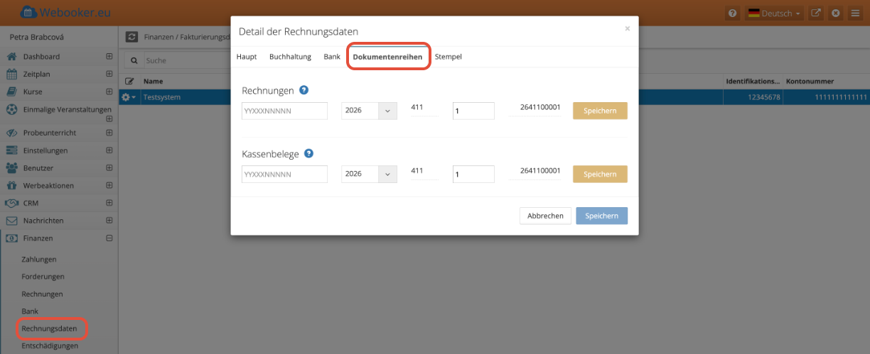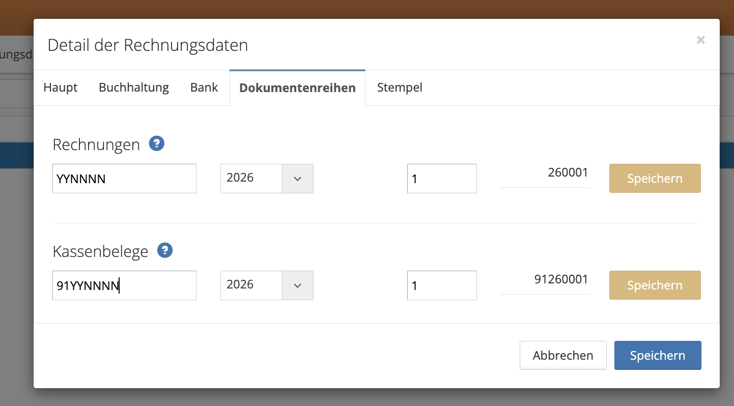 ➡️ Die Nummernkreise werden im Bereich Finanzen → Rechnungsdaten →Dokumentenreihn
