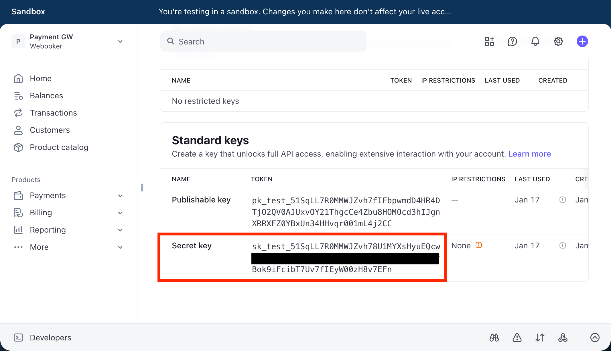 | Sandbox | sk_test_ | Tests ohne echtes Geld |