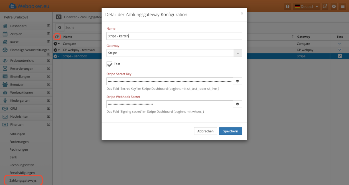 Einrichtung der Stripe-Zahlungsgateway für Webooker