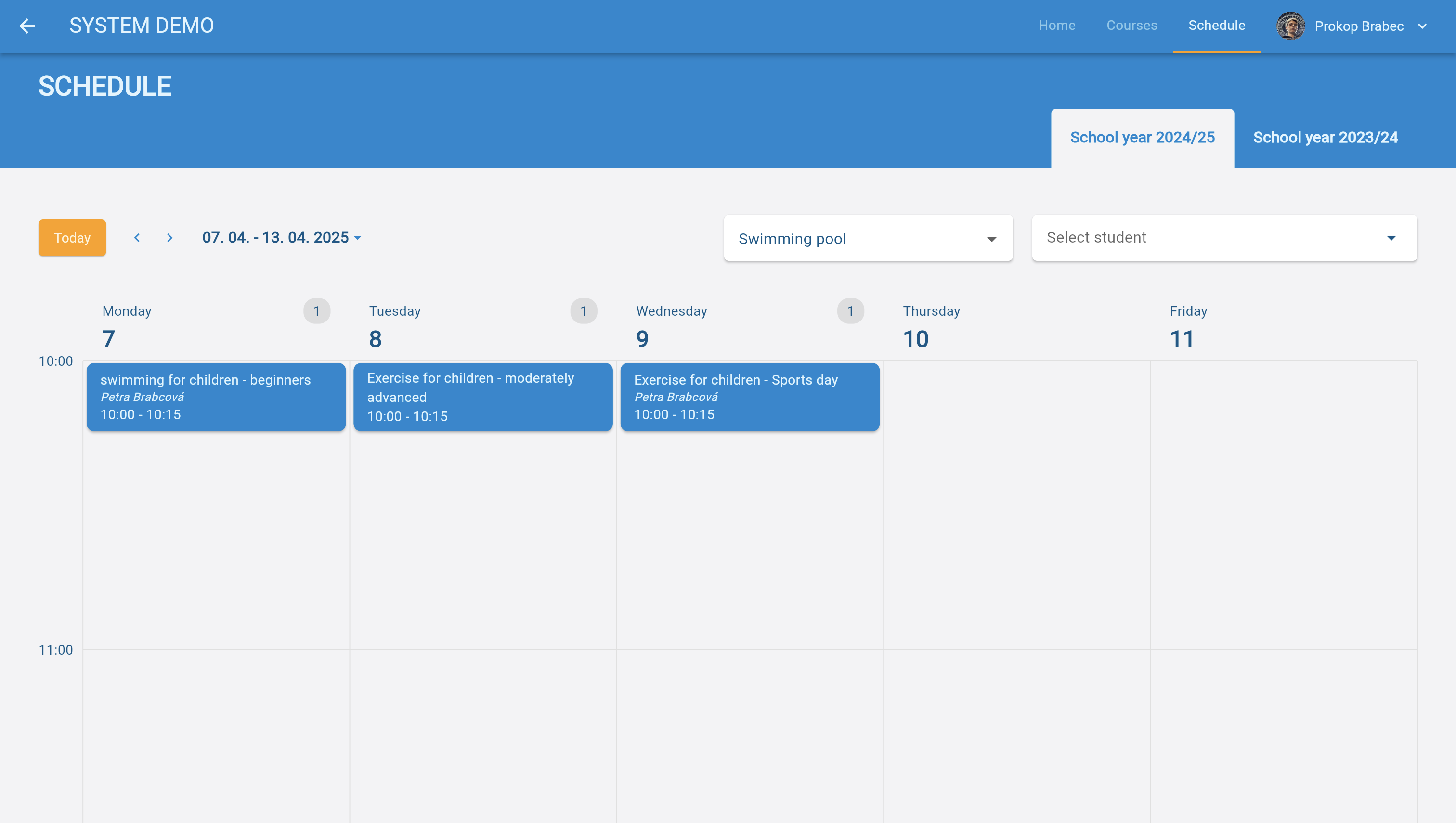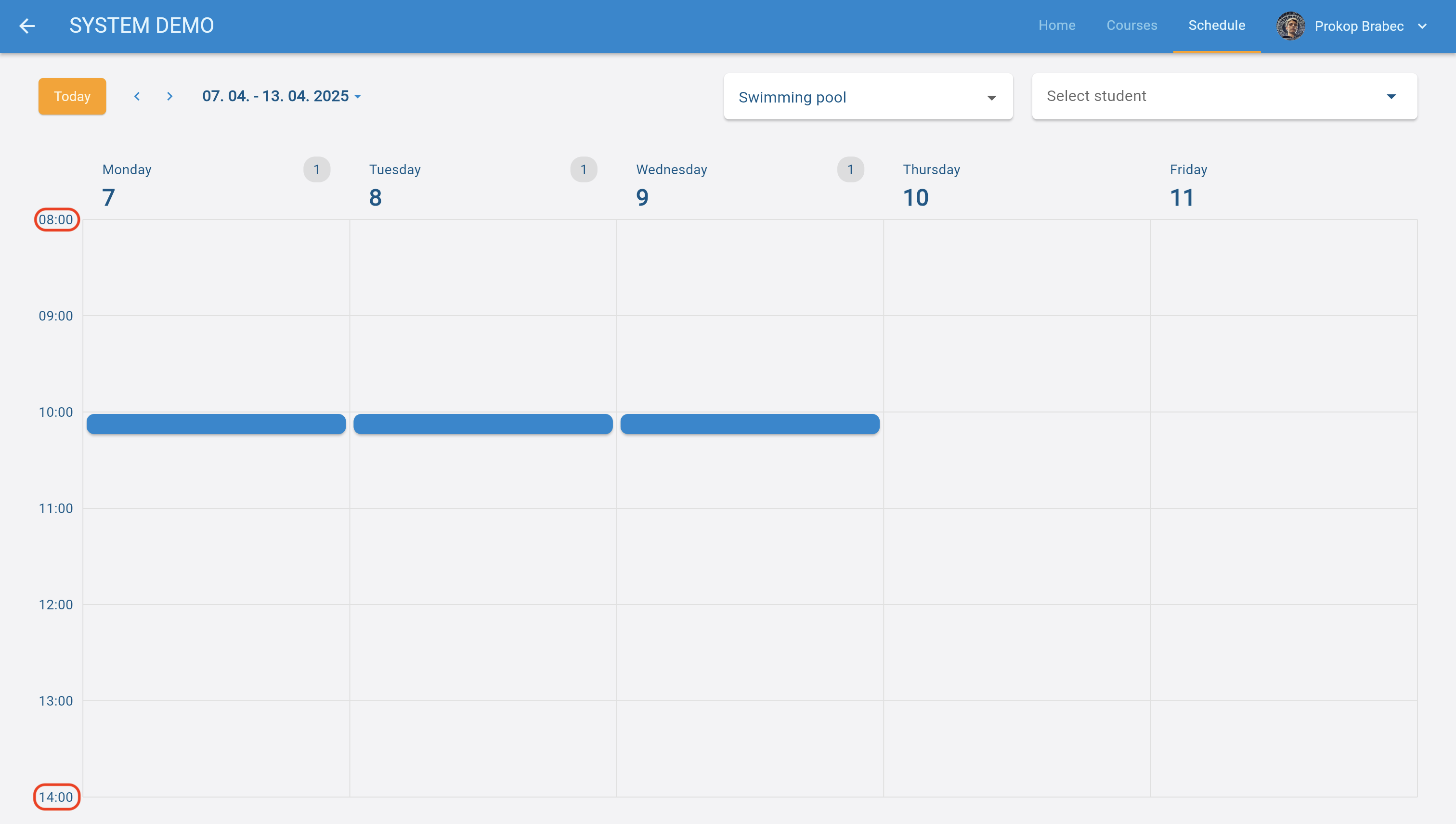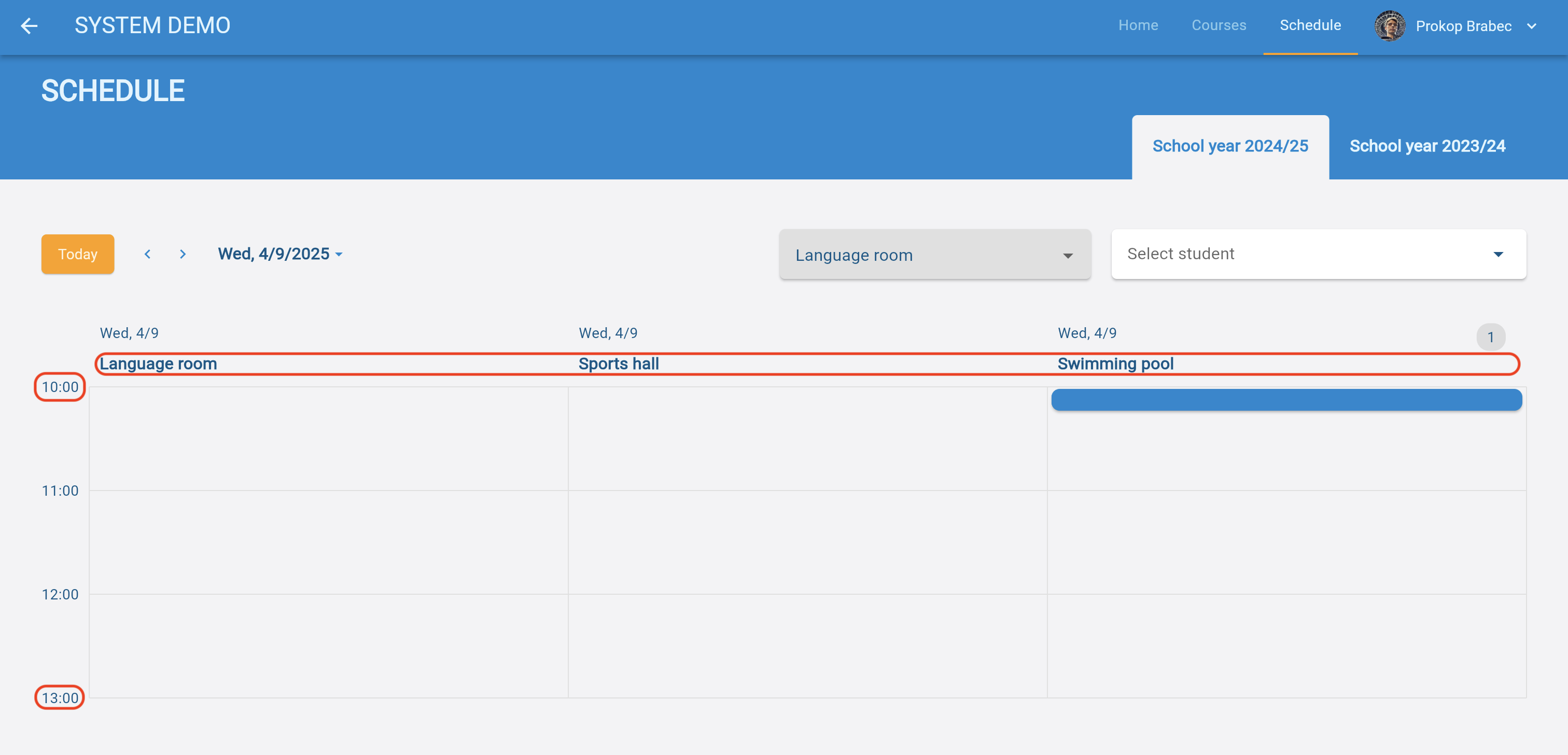 In the daily calendar, you can see multiple classrooms, the amount of classrooms visible can also be changed. This is what the daily schedule looks like: