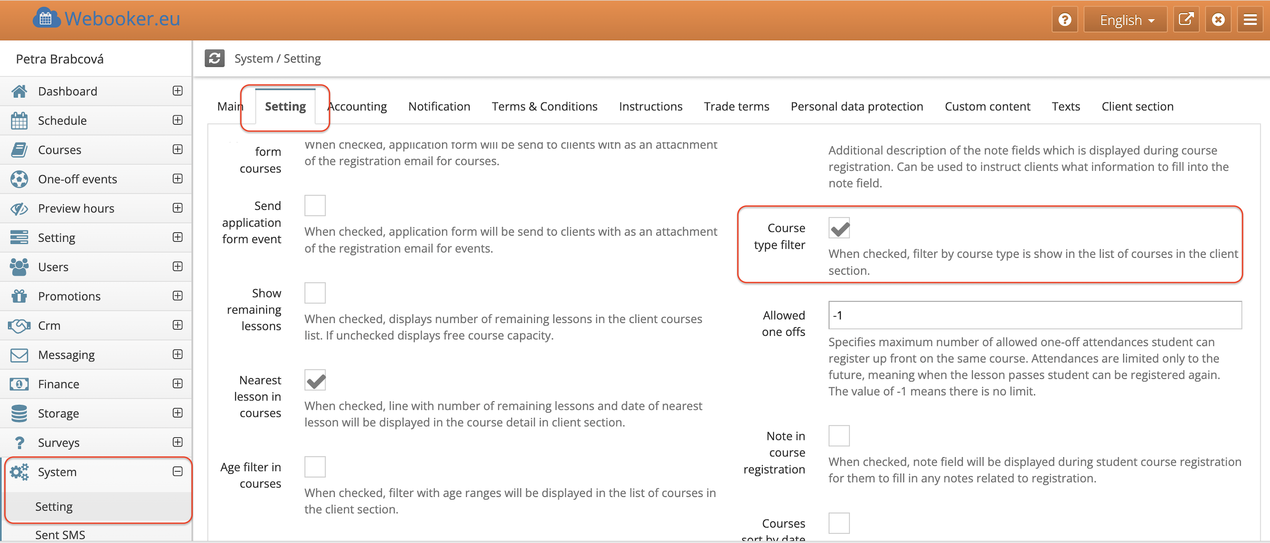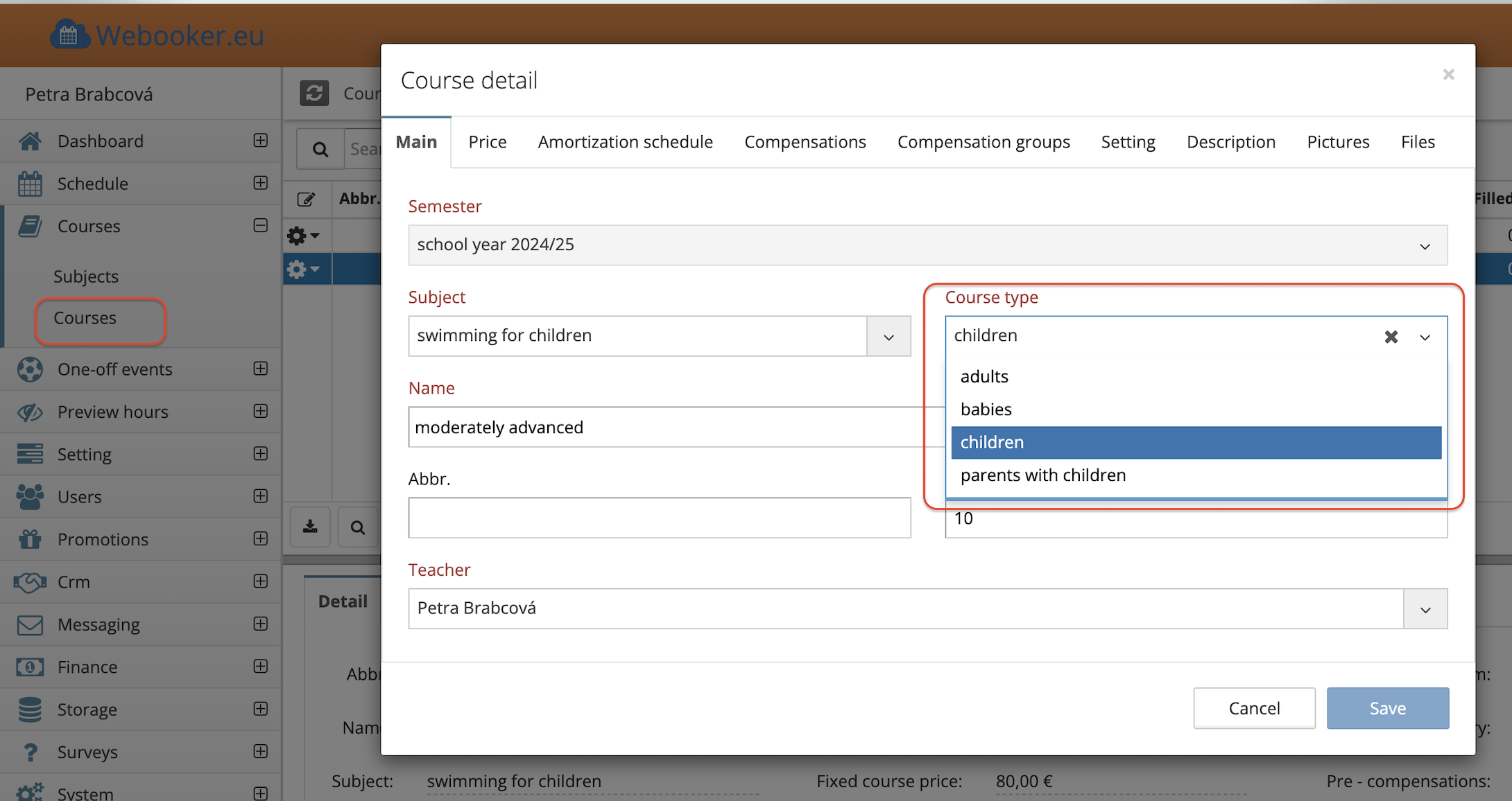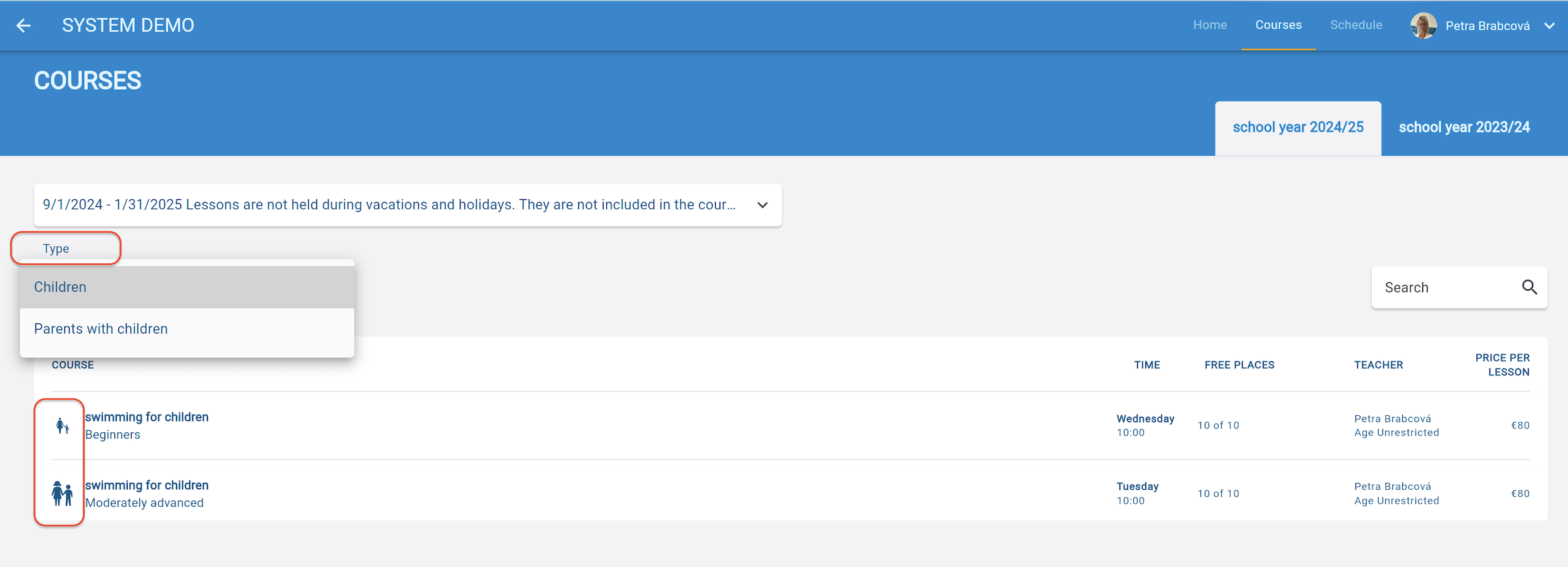 Course types serve as a filter for selecting courses in the client section. This will make it easier for your new clients to choose from your course offer.