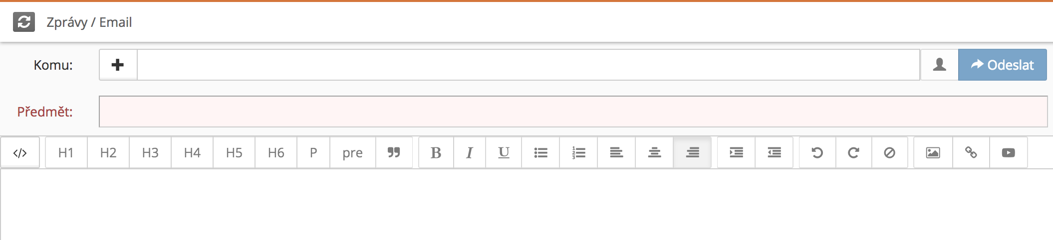 Jakmile e-mail dokončíte, odešlete jej tlačítkem Odeslat.