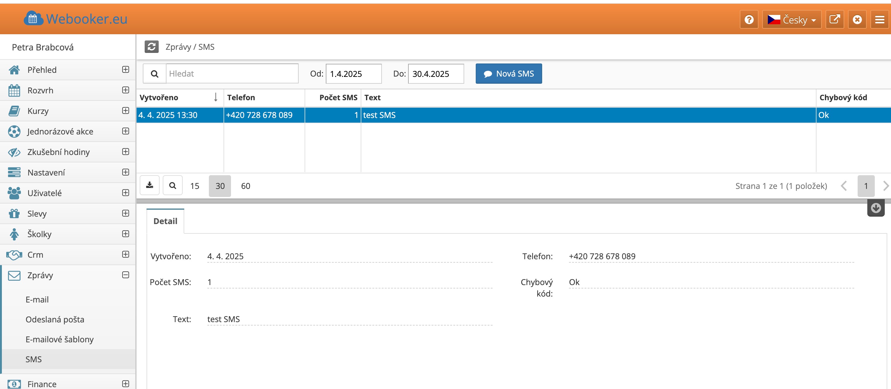 Všechny odeslané SMS, jejich stav doručení i samotný text zprávy najdete v sekci SMS.