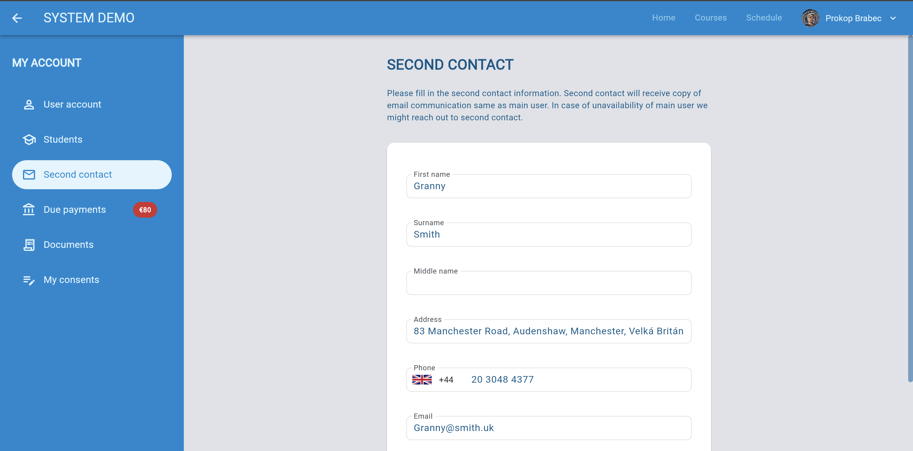 2. Submenu "Students" - A list of all the people who visit courses, events, preschools, etc.